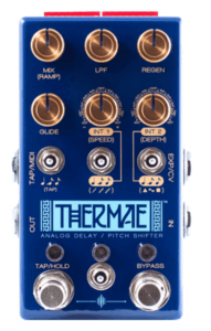 The Thermae represents a radically new approach to analog delay and harmonization. The pedal digitally manipulates the analog signal path created by 4 re-issued versions of the legendary MN3005 bucket-brigade delay chips. This creates the ability to change delay time in musically interesting intervals which allows for innumerable options for harmonizing and other sonic madness.