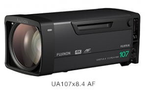 The UA107x8.4 AF is a box-type broadcast lens that delivers outstanding capability for tracking a moving subject and a fast and accurate auto-focus with AF speed as fast as 0.5 seconds. The lens’s ultra-high 107 x zoom ratio covering focal lengths from 8.4mm to 900mm and the use of a unique optical image stabilization mechanism allow users to accurately capture a distant moving subject and produce premium-quality video with minimal camera shake in live coverage of sporting or music events.