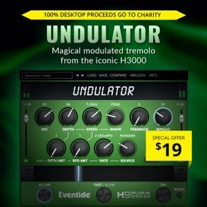 Undulator is a unique, rhythmic effect combining ethereal feedback and detuned echos running through an AM/FM modulated tremolo. Transform ordinary synths, keys, guitars, and vocals into evolving pads, tempo synched production elements, or ethereal and fluctuant delays. Add Undulator into your plug-ins collection for the most playable tremolo-style effect on your DAW or iOS device.