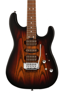 This premium guitar features a modified Dinky caramelized basswood body capped with a flame maple top and 3-ply body binding. Thanks to its sculpted heel, guitarists enjoy comfortable upper fret access while its tilt-back reverse 7-string licensed Fender Stratocaster headstock provides ideal string tension.